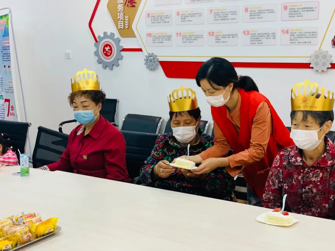 上午09:50,工作人员早早地在社区门口迎接参加生日会的寿星们,并引导他们签到就坐,10:00生日会正式开始,首先,工作人员为老人们倒上果汁,分发零食面包点心,并为老人们戴上精美的生日帽,接下来将生日蛋糕分发给各位寿星们品尝。”其中参加此次生日会的不少老人都是缺少子女的陪伴,尤其是孤寡老人和空巢老人,75岁的薛叔叔激动地说“很感谢举办的这次生日会,让我们老年人能够在一起话家常,女儿在上海,每年回家时间很少,我要把今天的生日会活动告诉女儿,让她也分享这份喜悦和快乐。”