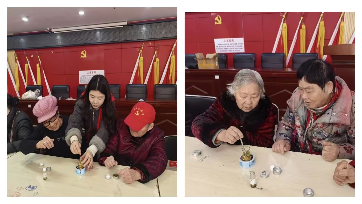 下午,面向60岁以上老人开展DIY护手霜手工活动。在工作人员的指导下,老人们有序调配、搅拌、灌装,制作出质地细腻、滋润舒适的护手霜。大家边做边交流,现场气氛轻松愉悦。不少老人完成后当场试用,看着自己亲手制作的成品,脸上洋溢着开心的笑容,纷纷称赞活动贴心又实用。