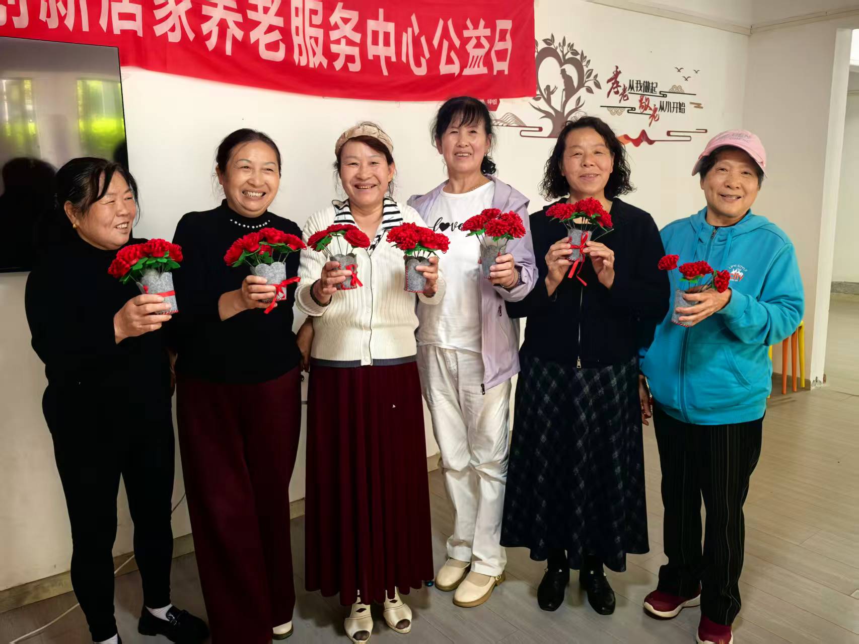 经过一小时的精心制作,一束束独具匠心、鲜艳动人的手工花束圆满完成。老人们捧着亲手创作的作品,脸上洋溢着自豪与满足,纷纷拿起手机拍照留念,定格这份美好与喜悦。